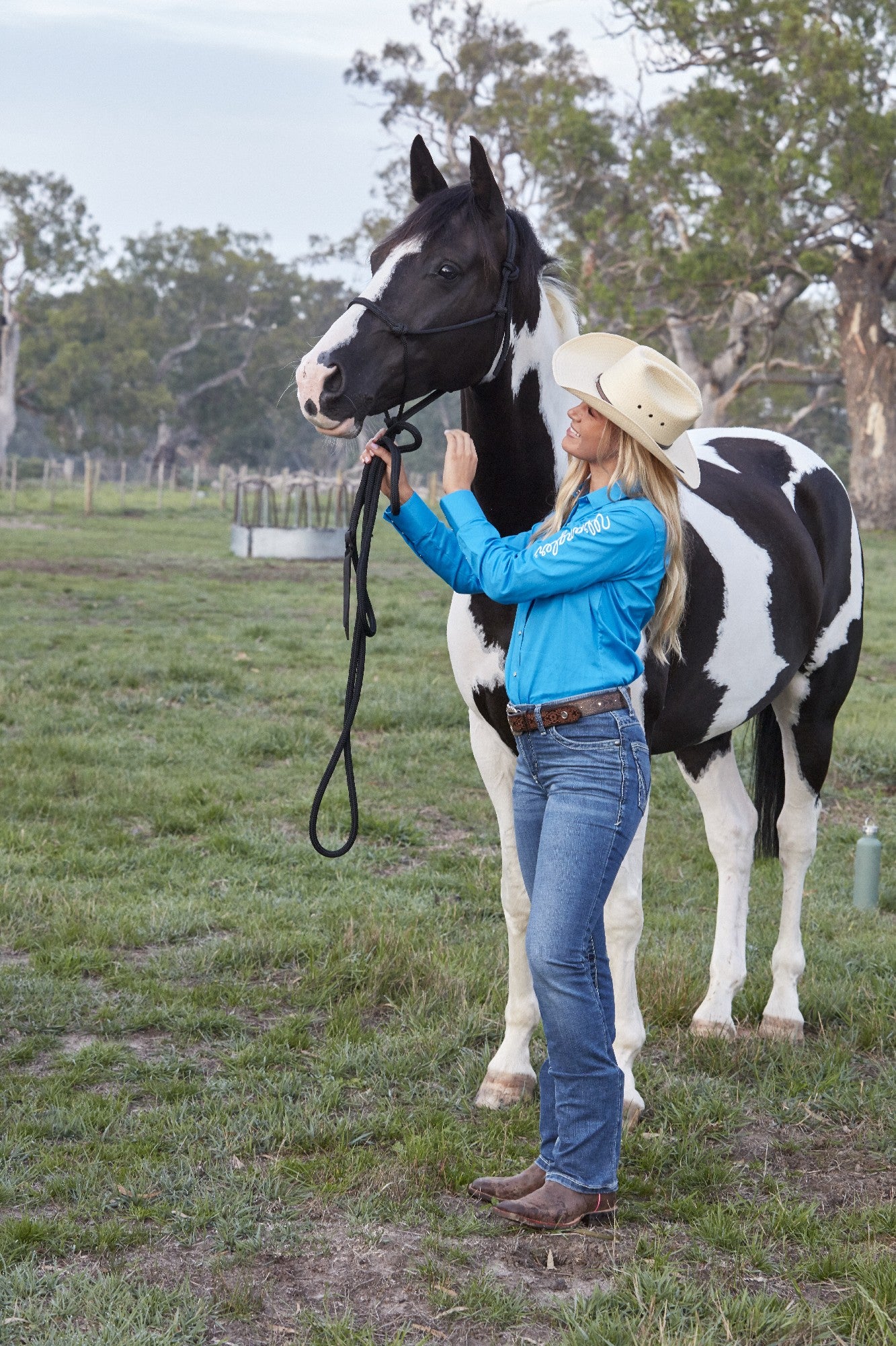 Practical, flattering, and unmistakably Western, the Wrangler Drill Logo Long Sleeve Shirt – Aqua (Ladies) is designed for women who need durability without sacrificing style. Made from hard-wearing drill cotton, this shirt offers excellent breathability and strength, making it ideal for riding, work, and everyday country wear.