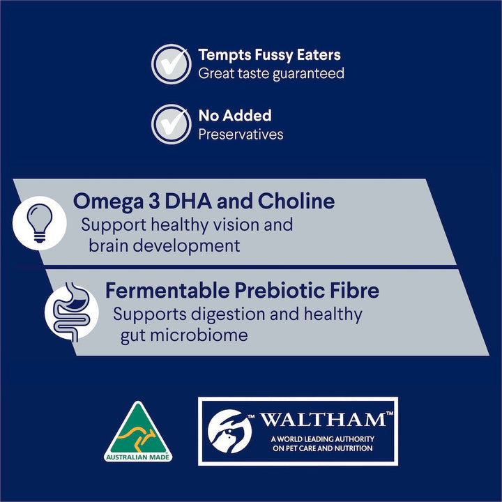 This super premium, Australian made, canned puppy food is complete and balanced to support the healthy development of your growing puppy. It is fortified with beneficial nutrients including antioxidants to help strengthen the immune system, zinc and linoleic acid to improve skin and coat condition, and prebiotic fibres to promote healthy bacteria in the gut for better digestive health and smaller, firmer stools. Advance Puppy Plus Growth Chicken & Rice also contains enhanced levels of DHA and choline to help support brain and cognitive development.