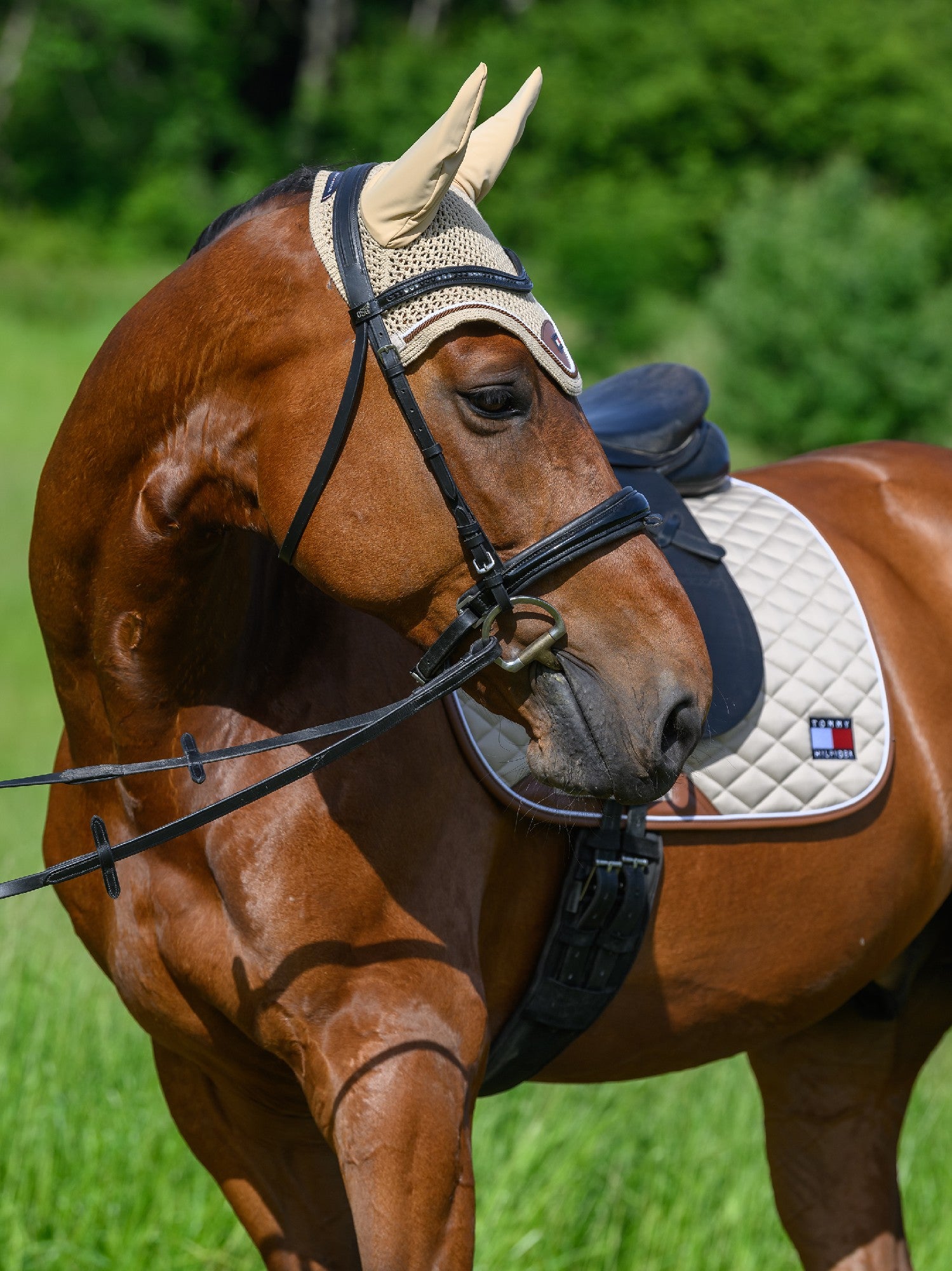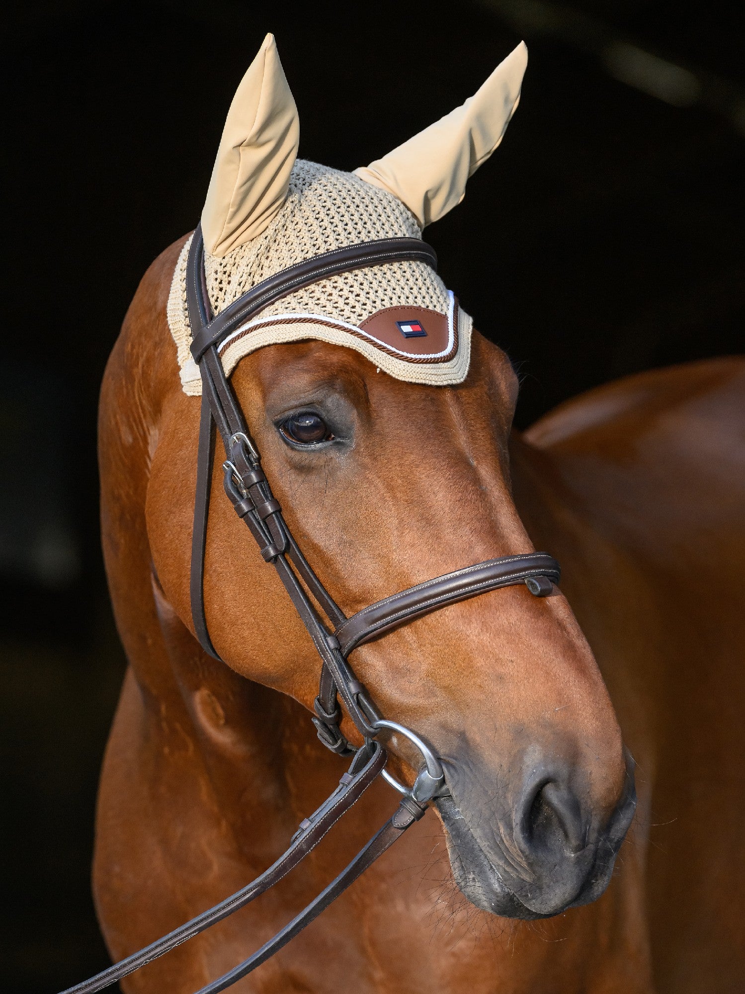 Elegant and understated, the Princeton Ear Bonnet in Beige keeps your horse comfortable and stylish. Featuring a hand-crocheted body with stretch ears for protection and breathability, complete with Tommy Hilfiger branding for a refined finish.